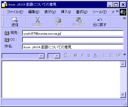 ご意見、ご感想をお寄せ下さい。(注意:このページは、JavaScriptで作りました。ただし Netscape Navigator 3.x 以降又は Internet Explorer 4.x 以降でしか動作しません。 それ以外の方は こちらから頂けたら大変ありがたく思います。) 氏名 ご意見、ご感想